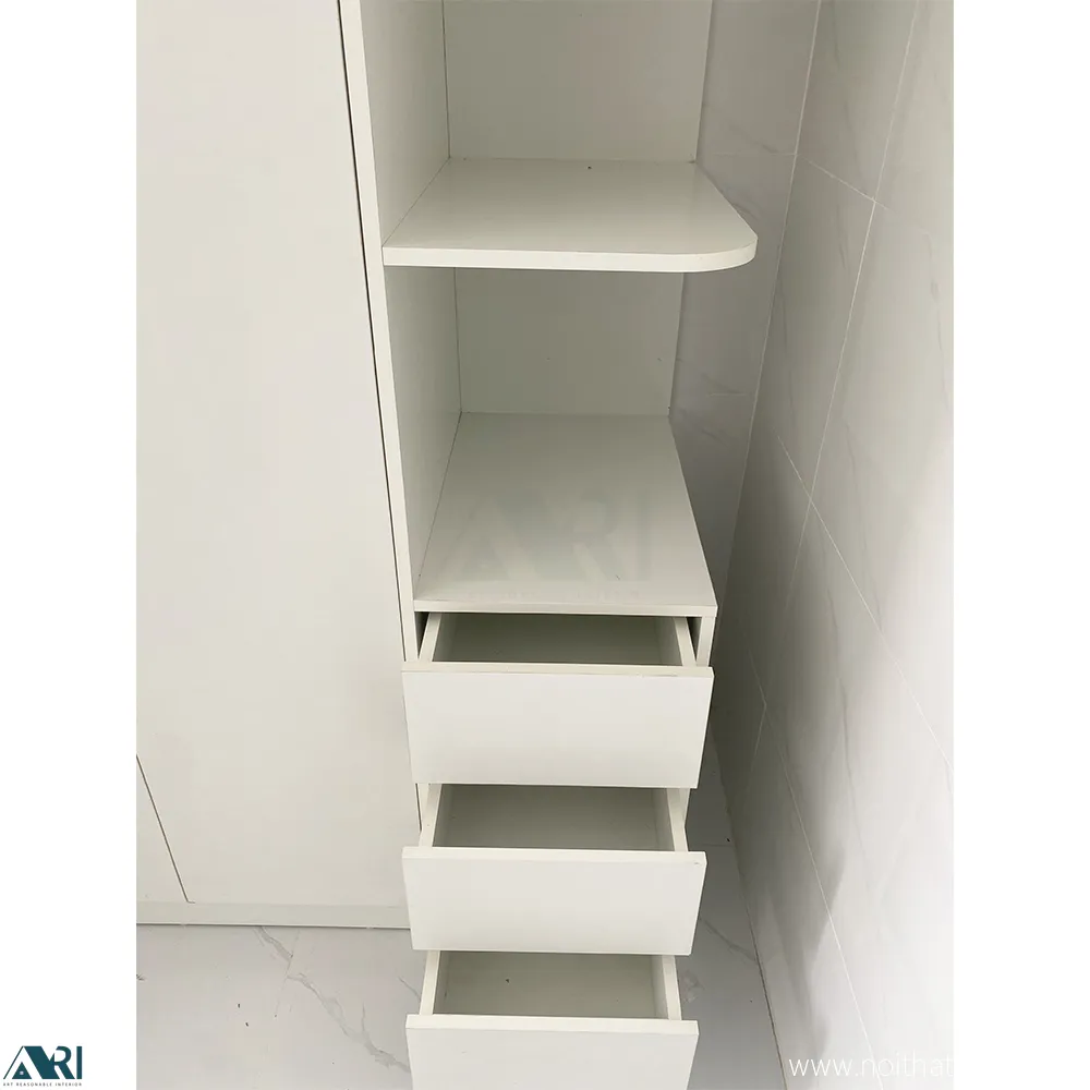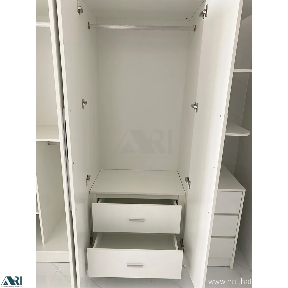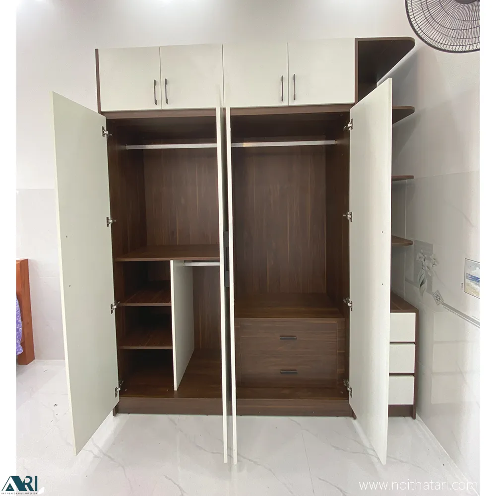 Mẫu tủ quần áo cửa mở này được đội ngũ của chúng tôi trực tiếp lắp đặt tại nhà khách hàng. Với kinh nghiệm và sự tỉ mỉ, chúng tôi cam kết: