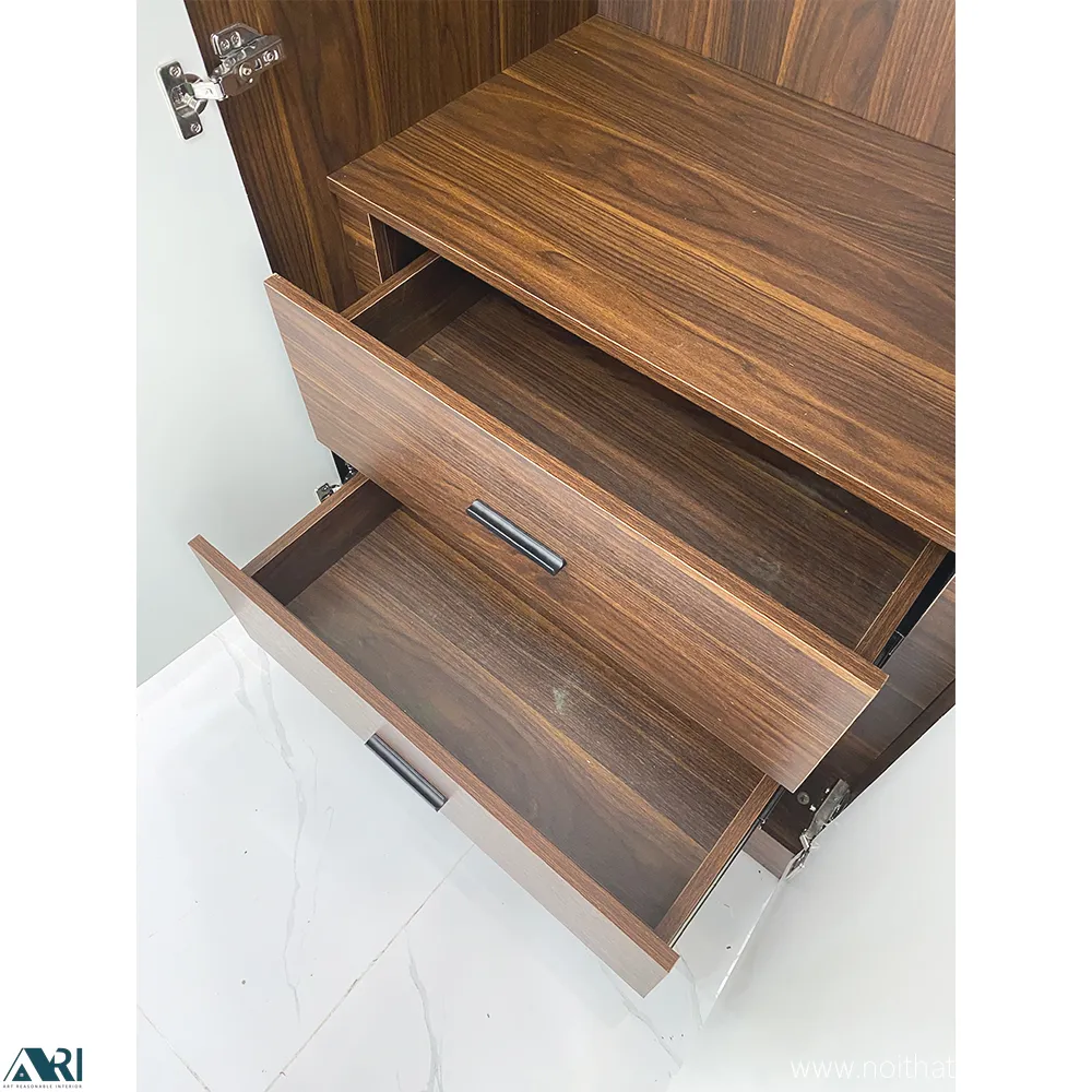 Tủ quần áo được thiết kế với cửa mở truyền thống, mang lại sự tiện lợi khi sử dụng và dễ dàng tiếp cận các ngăn lưu trữ. Sản phẩm sở hữu: