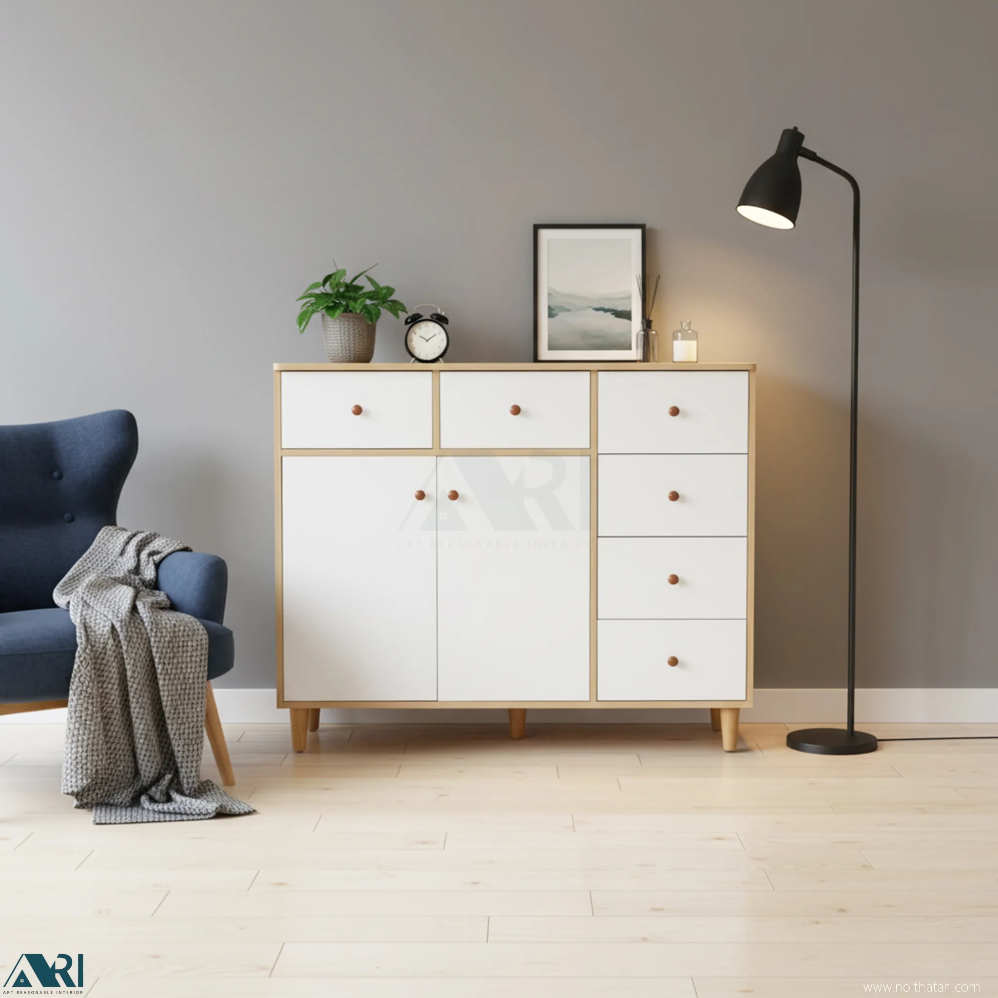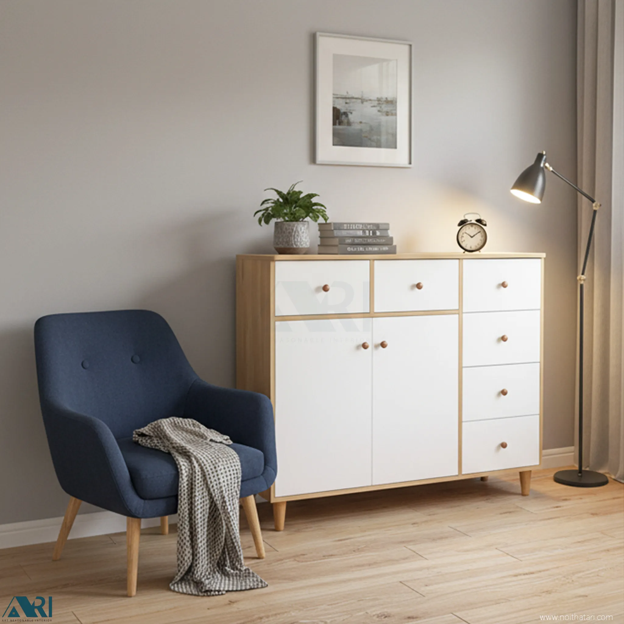 | Chất liệu | Gỗ MDF cốt xanh kháng ẩm phủ Melamine |